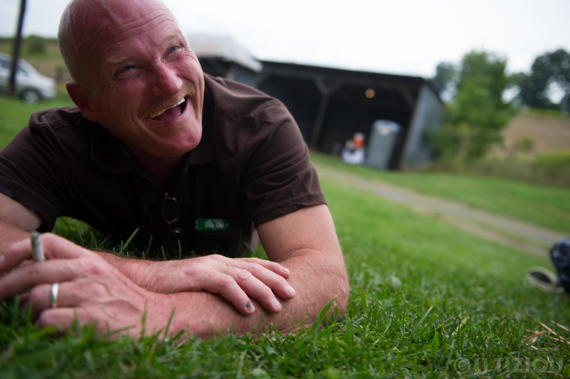 … and a crazy photographer climbing under the barn to get the shot…