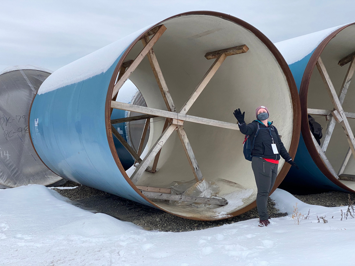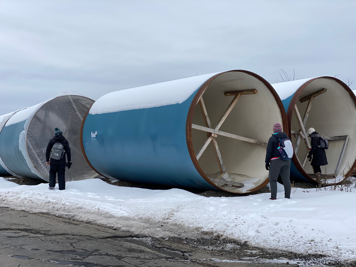 Coming this way allows us to pass by some giant pipe segments relating to other water treatment plant renovation work.