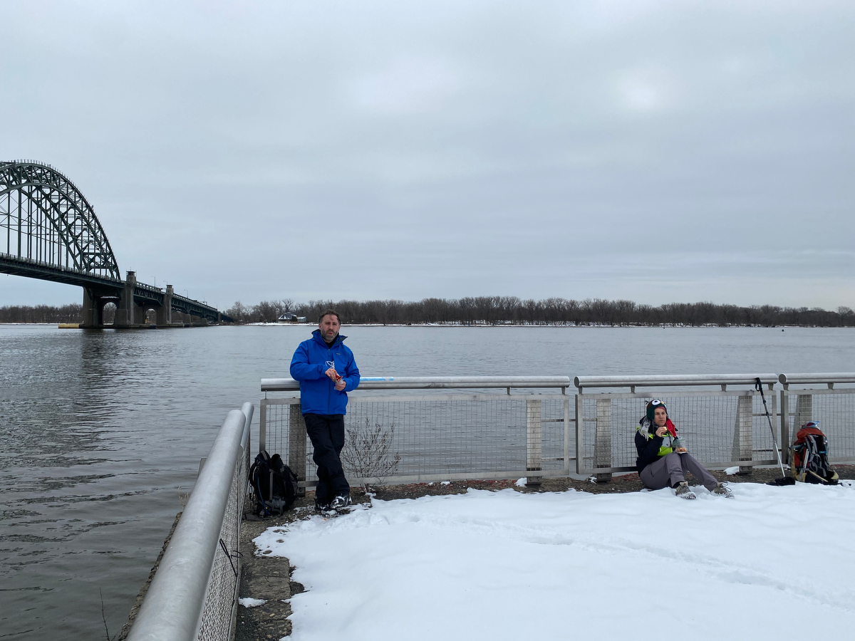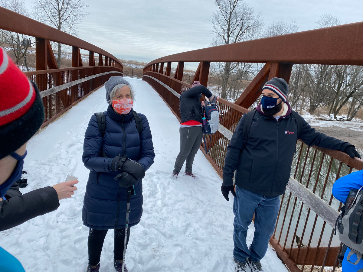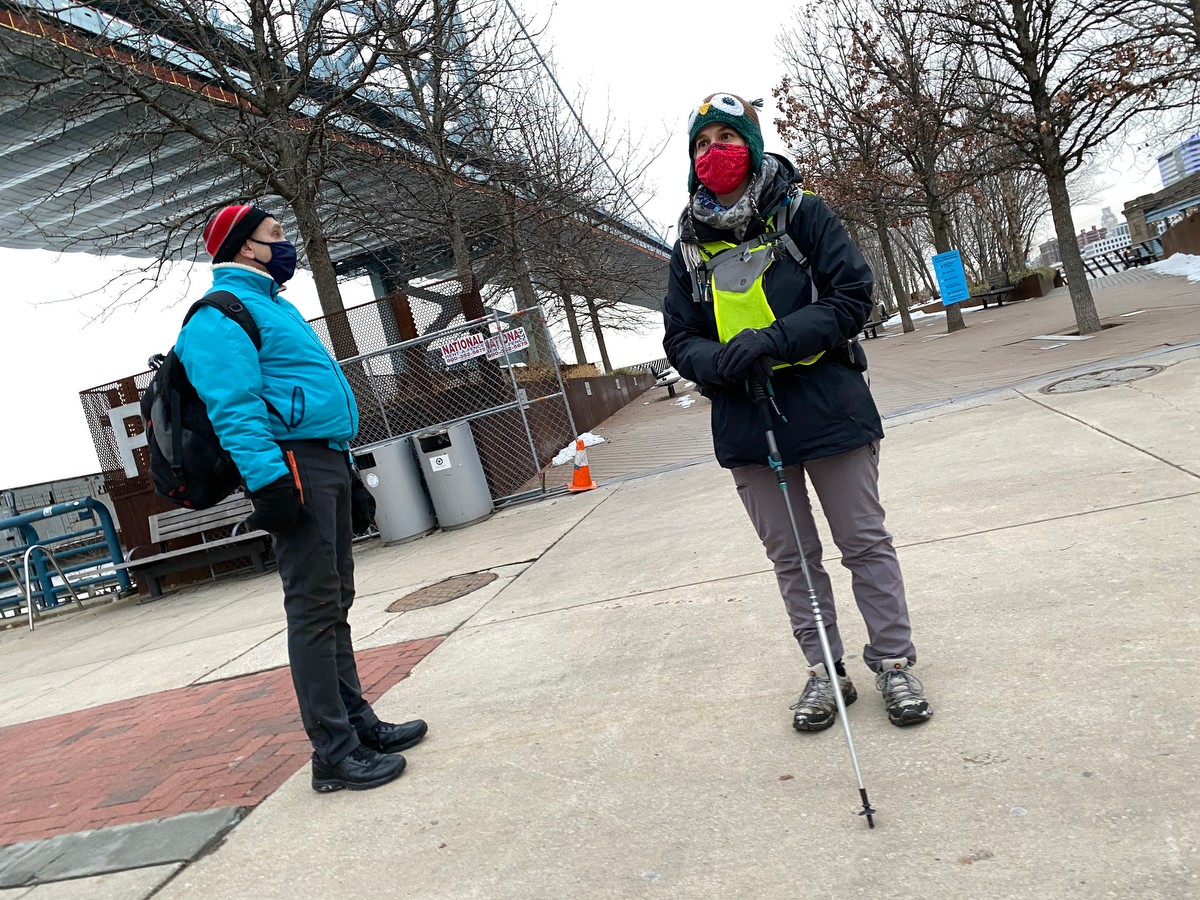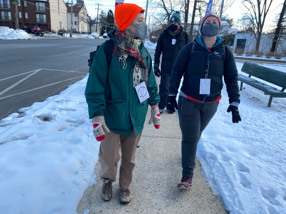 They’d met on Day 5 of the fourth annual walk back in 2019, walking the lower segment of the Delaware together. And here they were ready to now tackle the upper end together. With Sam sporting a stylish Walk Around Philadelphia t-shirt, of course.