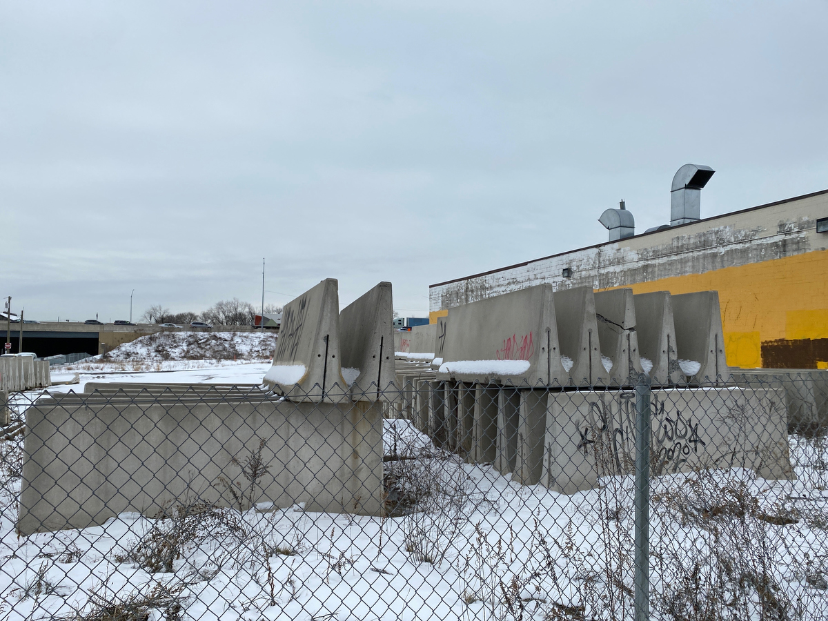 From here we continue down State Road, with its stacked concrete barriers…