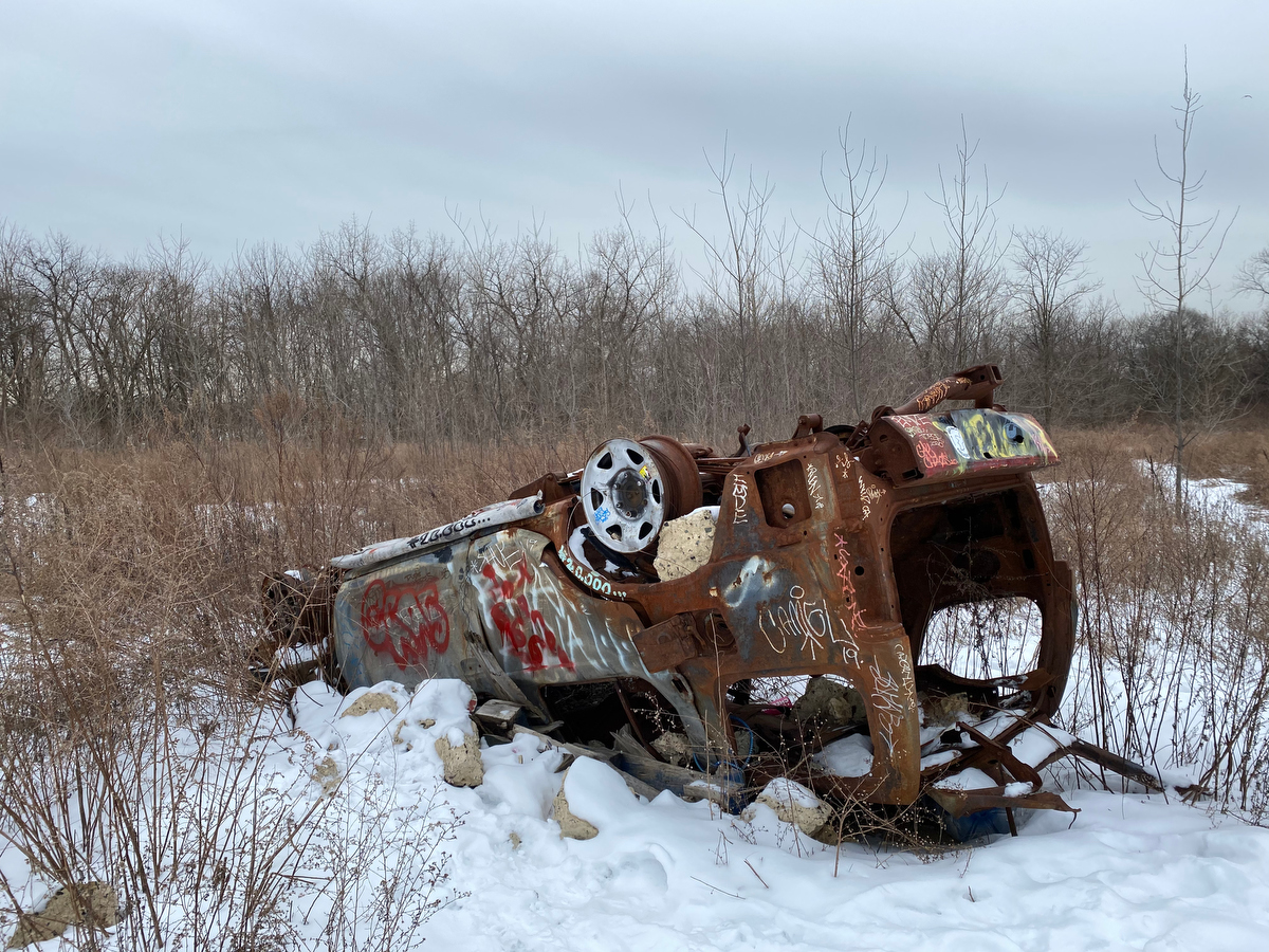 Continuing on into barren tree-covered lands that were probably once industrial sites and before that original forests…
