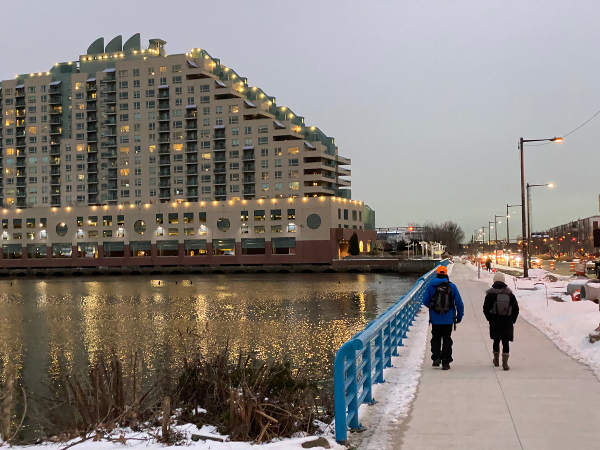 We make our way past the winter attractions at Penn’s Landing…