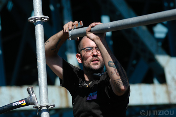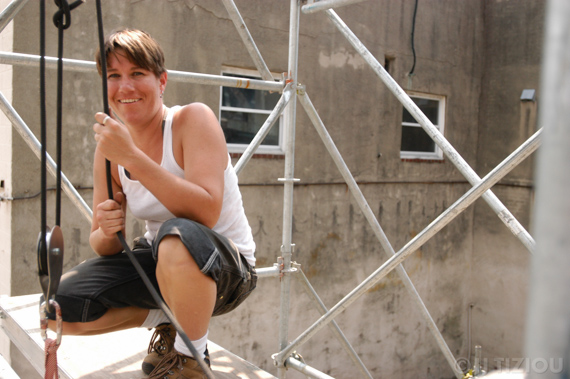 … so I started clambering about backstage and climbing the scaffolding with beautiful folk like Lisa…