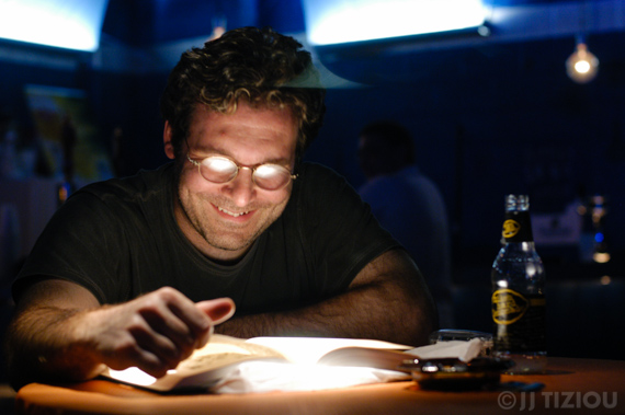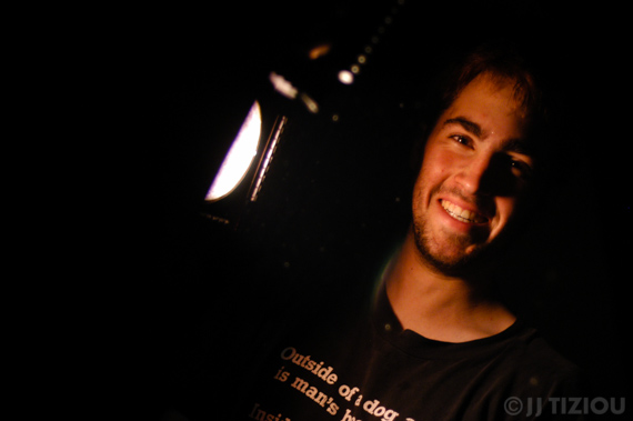… and some technical challenges. (In this shot, the light on Will’s face is a shaft bounced off of a spinning disco ball. This means that I had to anticipate the perfect coinciding of one of the shafts of light sweeping across his face, the flare of the cigarette and a glance of his eyes, while holding the camera steady enough for a sharp shot at 1/4 of a second. A simple shot, but so hard to pull off!)