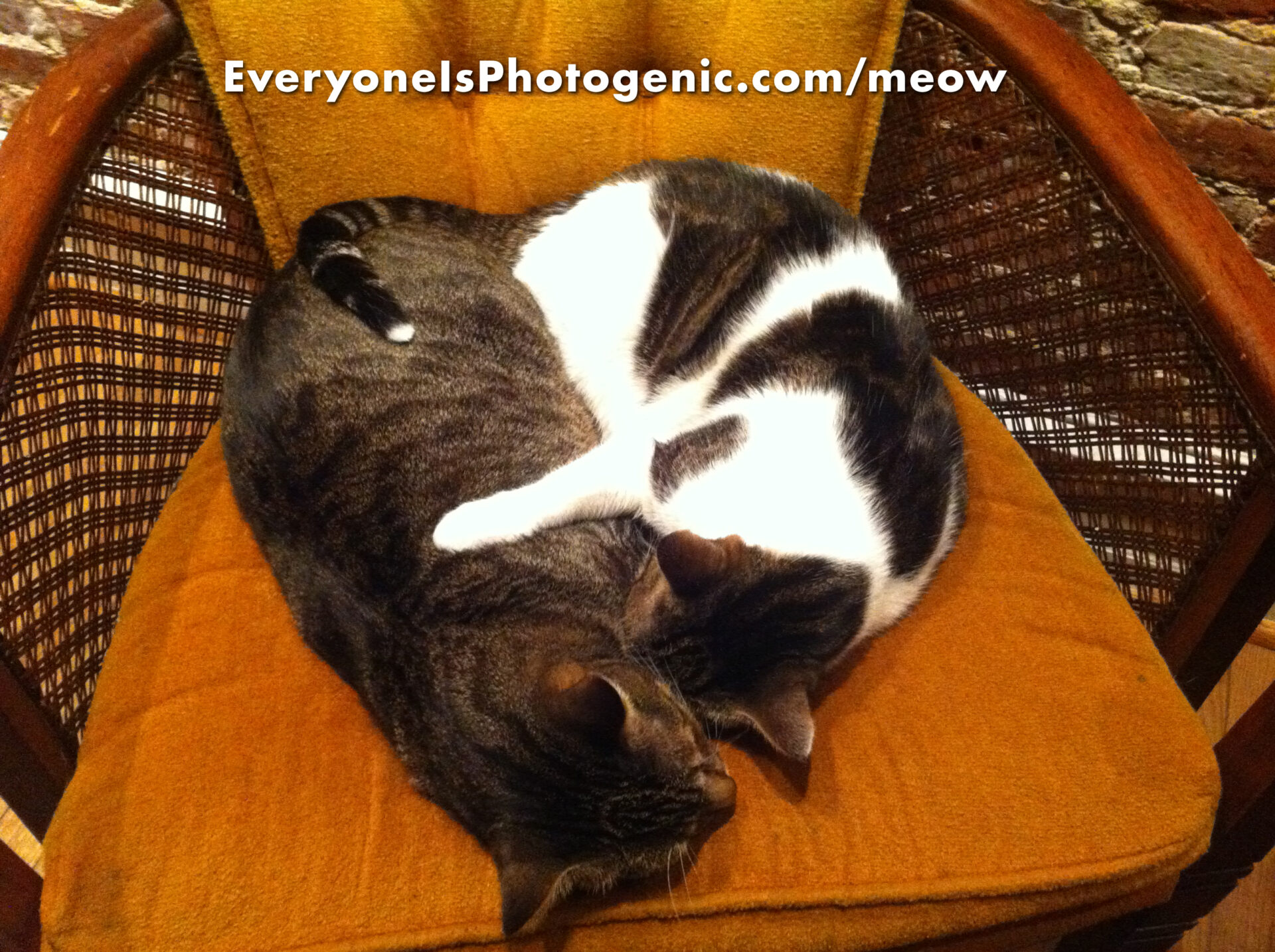 Yes, this adorable heart-shaped snuggle-cuddle-pile of hugging kitten cuteness is a regular sight in my house this fall, as my housemate happens to be mother to two of the cutest cats in the universe.