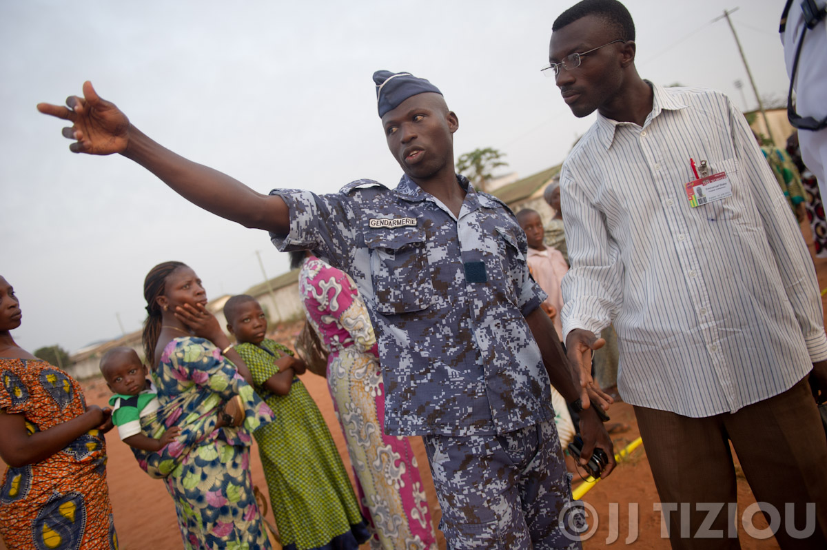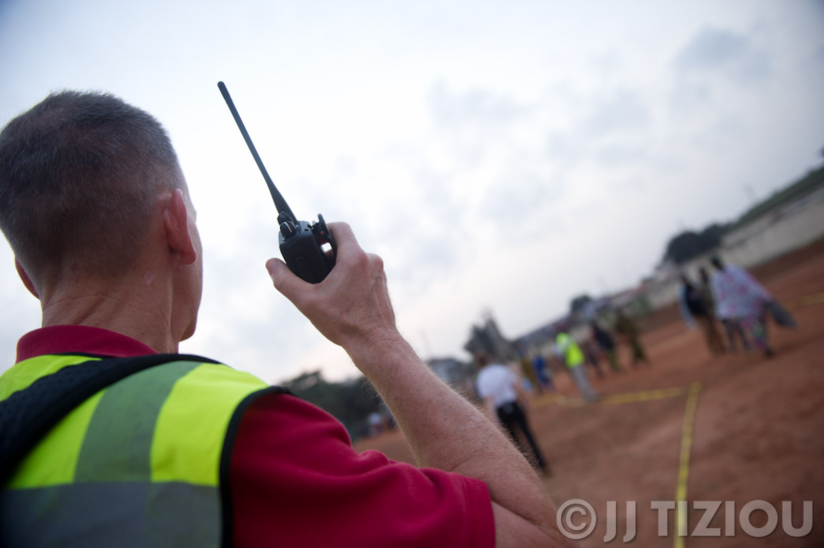 As the line continues to grow longer, our security crew coordinates with the local gendarmes….
