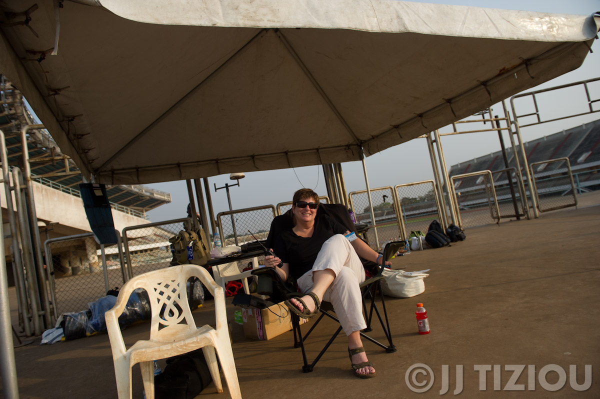 Overseeing all of this is our command post at the top of the stadium steps…