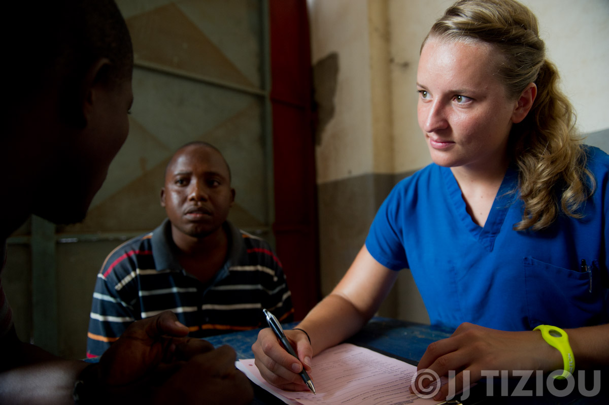 … while Pierre, our Government Liason, translates an interview with one of our nurses.