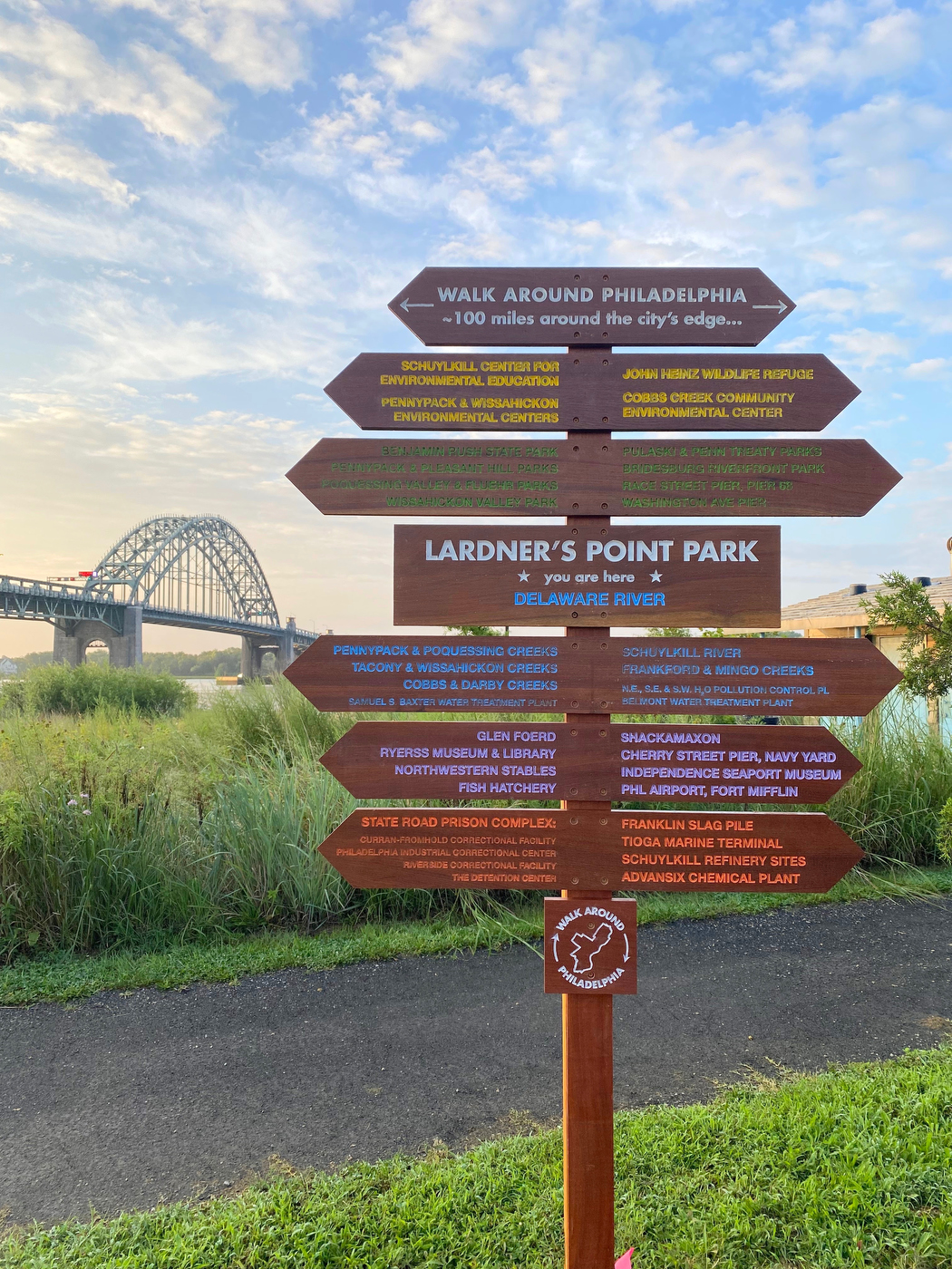 I’m thrilled to announce that we’ve installed the second Walk Around Philadelphia wayfinding sign at Lardner’s Point Park on the upper Delaware River Trail.