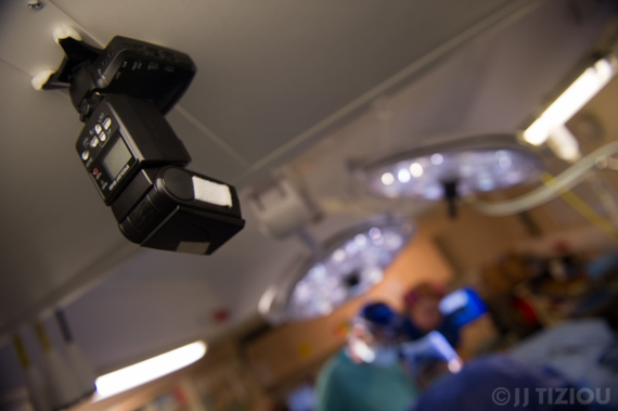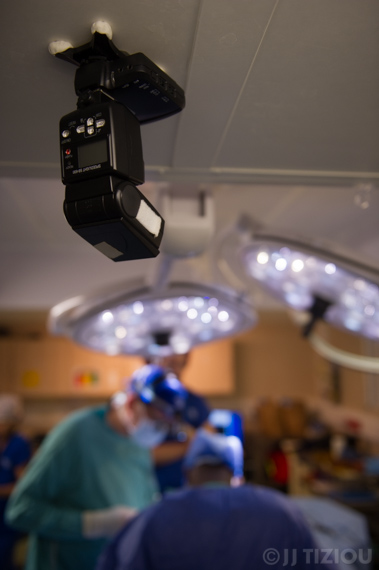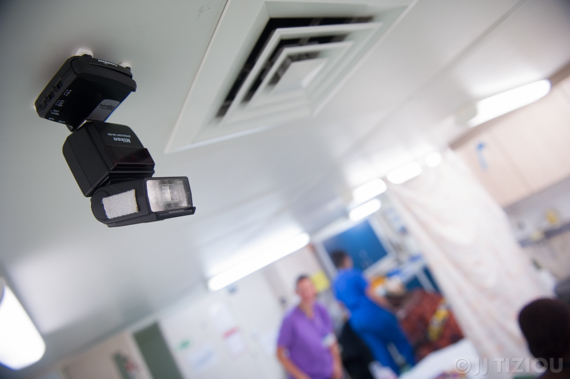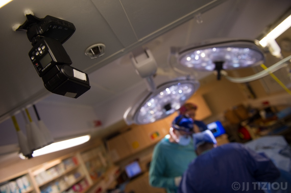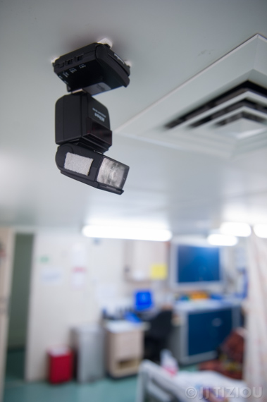 … although it was actually harder in the operating rooms, where it turns out that parts of the ceiling were paneled with plastic, which limited my potential placement of the strobes.