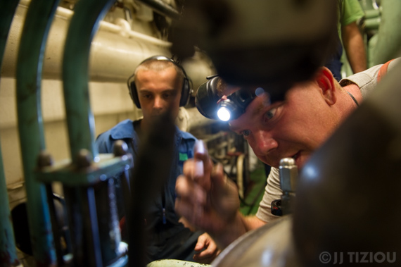 Coming to the ship, I knew that even bringing the little baby portable lightstands in my kit wouldn’t be a good idea. First, the ship sways a decent bit, and they might fall. Second, it’s crowded, and they’d get in the way of people doing their work. Third, I was living out of a duffel bag for three months and didn’t have room for them. And when much of my work was going to be more on-the-fly documentary style stuff, why waste space?
