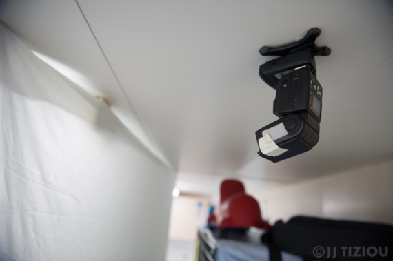 Here’s the setup: it’s pretty straightforward, with a few simple sheets & some remotely triggered strobes. (Yes, David Hobby over at Strobist is of course an inspiration for all things DIY-lighting. The lighting setup isn’t too fancy…