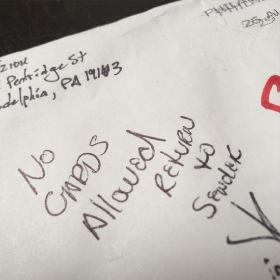 - A week later, the card gets back, rejected, because “No cards allowed.”