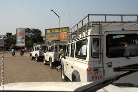 For the actual screening to take place smoothly, a lot of preparation has to take place. Much has already happened aboard the Africa Mercy, and here the advance convoy heads to the screening site…