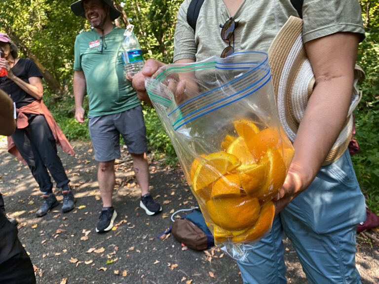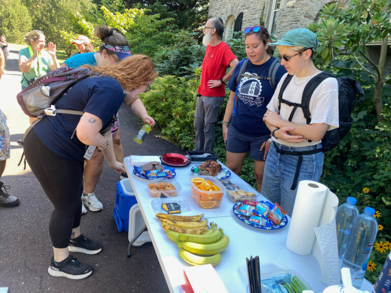 The only thing that’s sweeter than the sharing of snacks with fellow walkers while on the walk is when some of our walkers (or friends of the walk) show up in the middle of the nowhere (or welcome us to into the Morris Arboretum) with surprise Trail Angel snack stations!