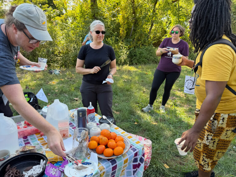 But you don’t have to be a high school student to enjoy adventures in the woods… Mildred had a great time bushwhacking with us along the Poquessing Creek… and our eldest participant circumnavigated the city at age 96 — a reminder that the city’s edge can hold all ages, all bodies, and all ways of moving through the world.