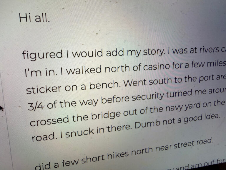 - William walked out of a casino, spotted a sticker, and set off on what looks like at least five different days of hikes ’round the city’s edge!